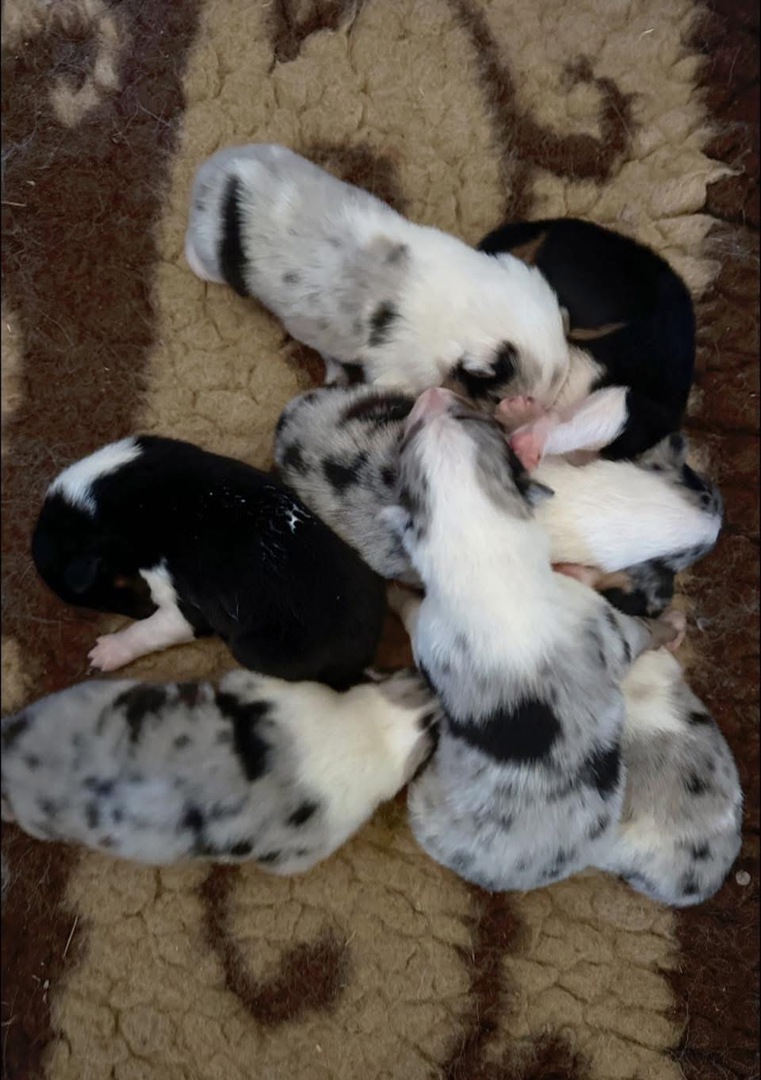 unser erster Wurf Toftys ist gelandet. Am 13.August2025 hat Silvie ihren ersten und letzten Wurf zur Welt gebracht. Sie schenkte mir 19 Jahre nach unserem A-Wurf fünf blaue und zwei trico babies.